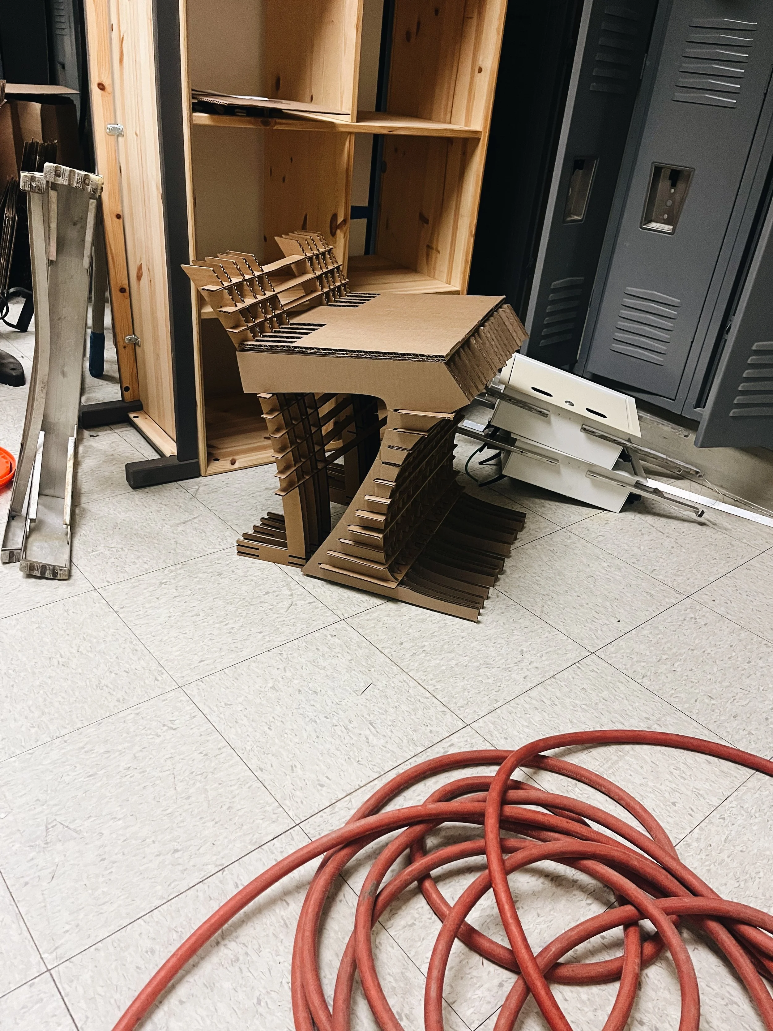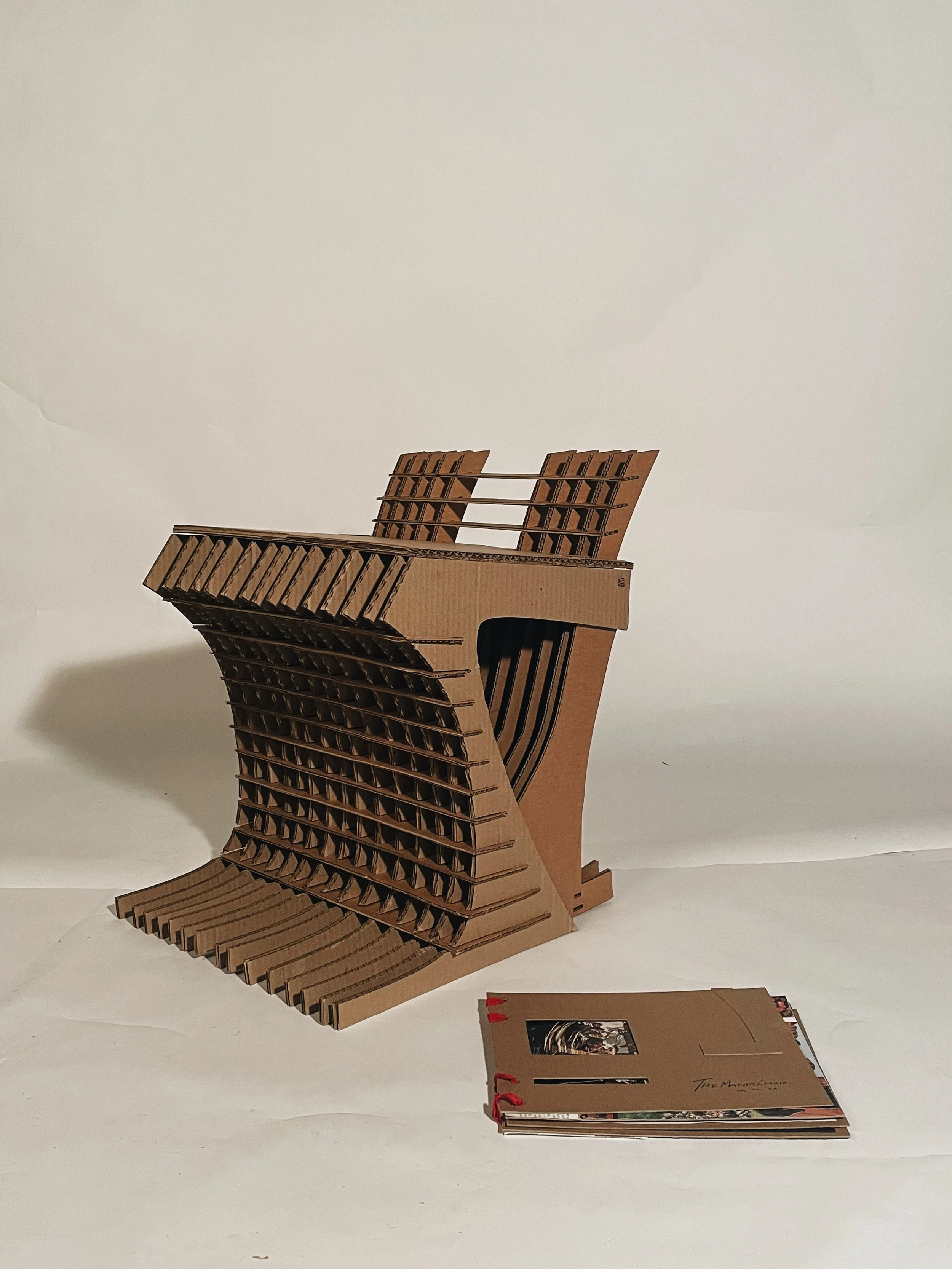 A cardboard stool created by Mack Hammond & Maya Baumann
